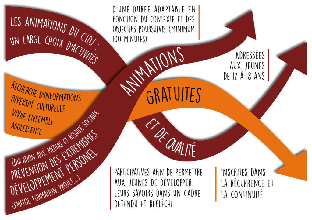 Pour plus de détails concernant les thématiques, outils et modalités n’hésitez pas à nous contacter via l’adresse animations@cidj.create2.be ou au 02/219 54 12.